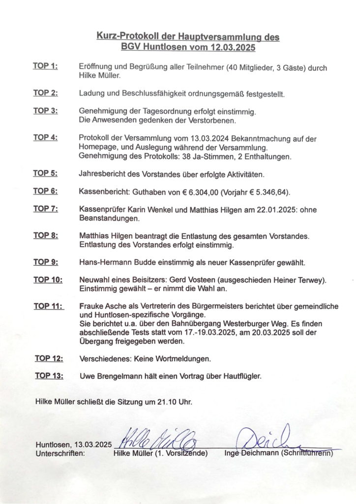 Protokoll Hauptversammlung 2025