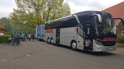 Am 7. Mai 2022 fand endlich wieder unsere gemeinsame Tagesradtour statt. Am frühen Morgen um 7 Uhr trafen wir uns auf dem Dorfplatz in Huntlosen, wo die Fahrräder verladen wurden. Mit dem Bus ging weiter nach Cloppenburg.